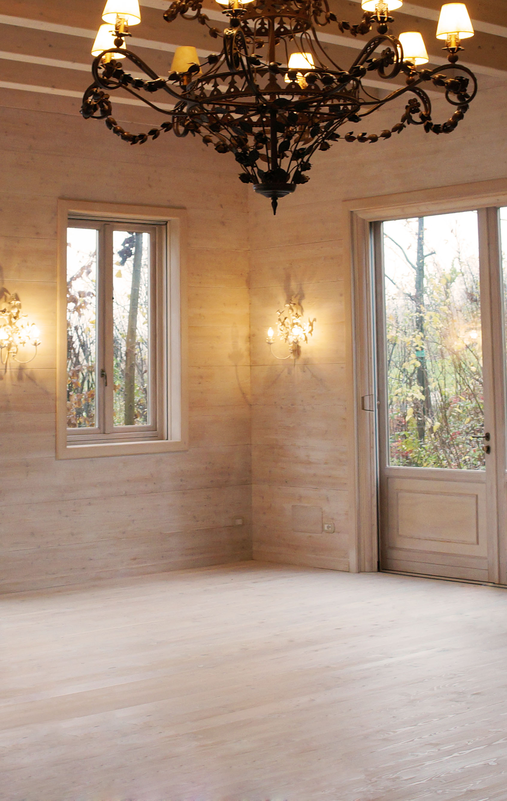 Monferrato - In the wake of an exciting and well done project, the 8th century manor house returns to live. Thanks to Paghera's creativity, today, it enhances itself with a new graceful architectural element: a wonderful hall of feasts, realized entirely with natural wood and air-conditioned by heat pumps. A record manufacture for Paghera's team, who in a short period of time concretized a constructive idea that is devoted to the ecological sensibility, without losing appeal and scenographic impact. The wood grains, running all around the architecture, embrace the wide rooms with the typical warmth of a natural material, connecting the interior to the outdoor, as well as the large windows do, with their special view over the greenery.